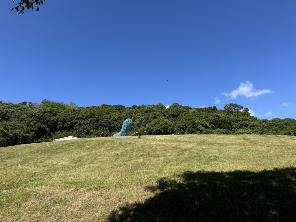 我們繼續走學校馬路邊,前往大學游泳池。聽說這裡是有名的拍照好地方。游泳池對面還有一個位於陡峭草坪上的雕塑公園。