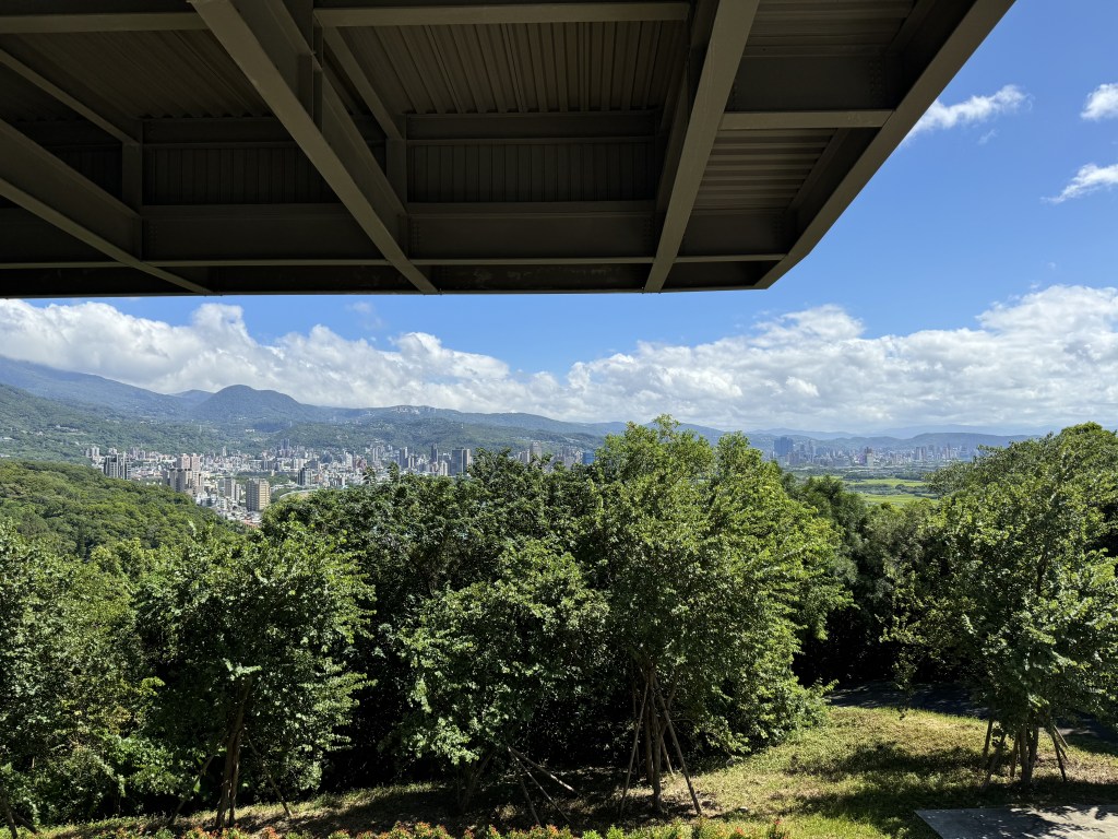We exited from the trees onto a large paved square where some of the arts students were rehearsing for a performance. We stood and watched for a while, eventually climbing the stairs we found to the left, up to the road. From there, we looked out over the Taipei Basin and continued to enjoy the show. Both the university and its views are gorgeous, especially on a clear day.