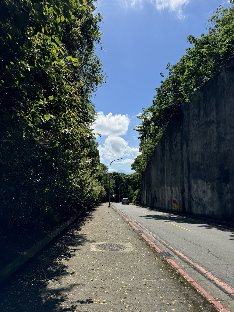 It turns out that the first section of the first section of the Taipei Grand Trail (which I’m calling Section 1.1) is an upward climb that skirts the outer edge of the university. The trail follows Xueyuan Rd. to climb past campus to the northwest. The other side of the road is Taipei City University of Science and Technology. This section is technically a roadside connector. By this I mean that this section involves no trail walking. The route follows city roads, though there is happily a sidewalk for the entirety of the way (no walking on the berm).