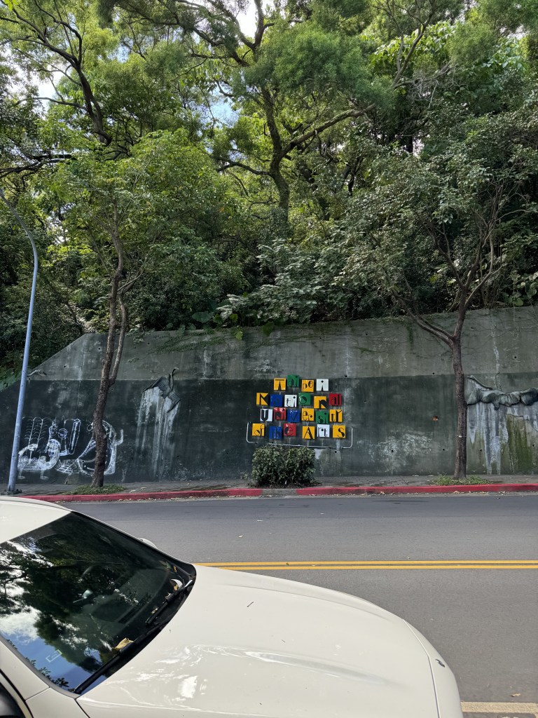 Instead, we continued to stroll up the road to the TNUA swimming pool, which is well known as a good spot to take pictures of Taipei. There’s also a sculpture park situated on a steep rolling lawn across the street.