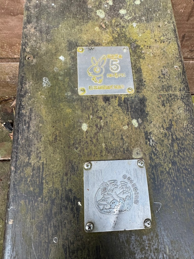 This stencil board marks the place where the Guizikeng Hiking Trail meets up with the Taipei Grand Trail. If you keep going upward (to the right up a staircase), you will soon come to Fuxing 3rd Rd. (marked as the Xiaqingque 下青礐 Trailhead) and the road connector to the next section (as well as Qingtian Temple and its bus stop). If you are doing the loop trail, instead turn downward and left.