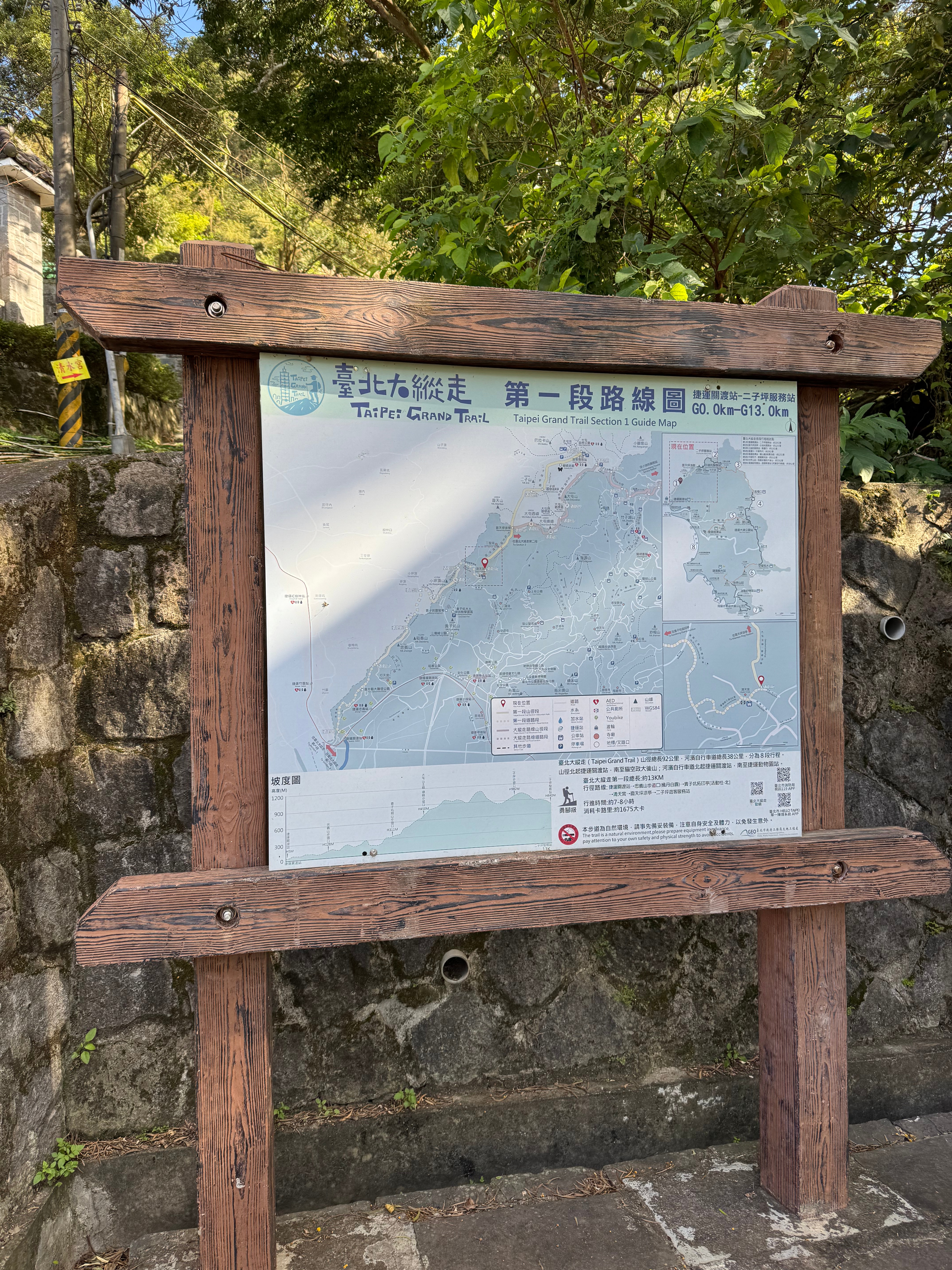 | Public transport: trailhead: S6 bus to Beitou MRT (every 30 min) endpoint: none | 公共交通: 步道起點:S6公車(每30分一班);從清天宮站至北投捷運。 終點:無 |