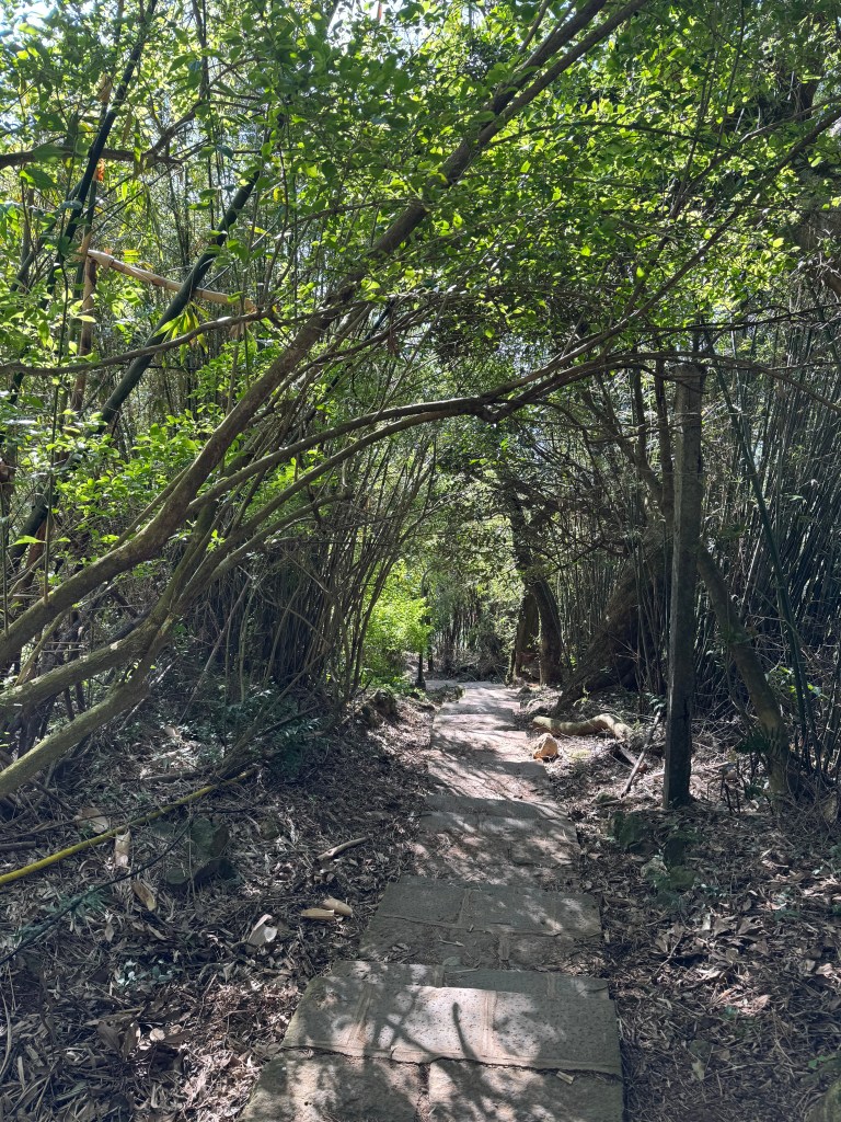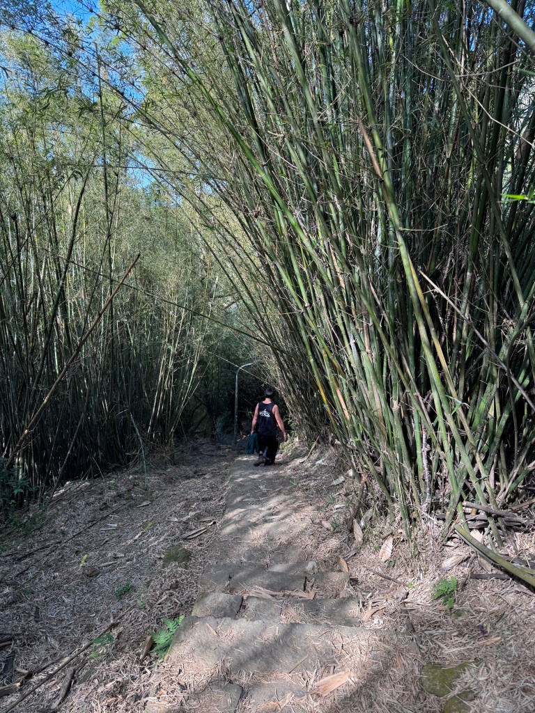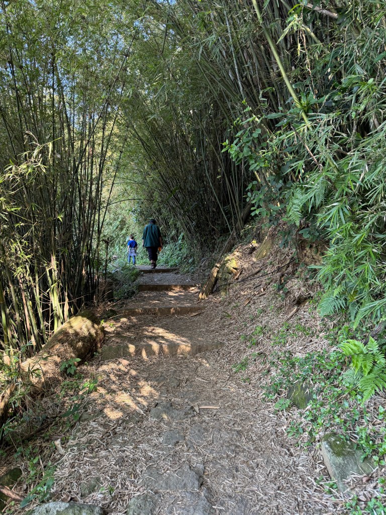 The stone steps continued for a while before petering out, leaving us on a nice dirt trail through a stand of bamboo. My six-year-old skipped along. He always likes the flat parts the best! And having dad along is a plus.