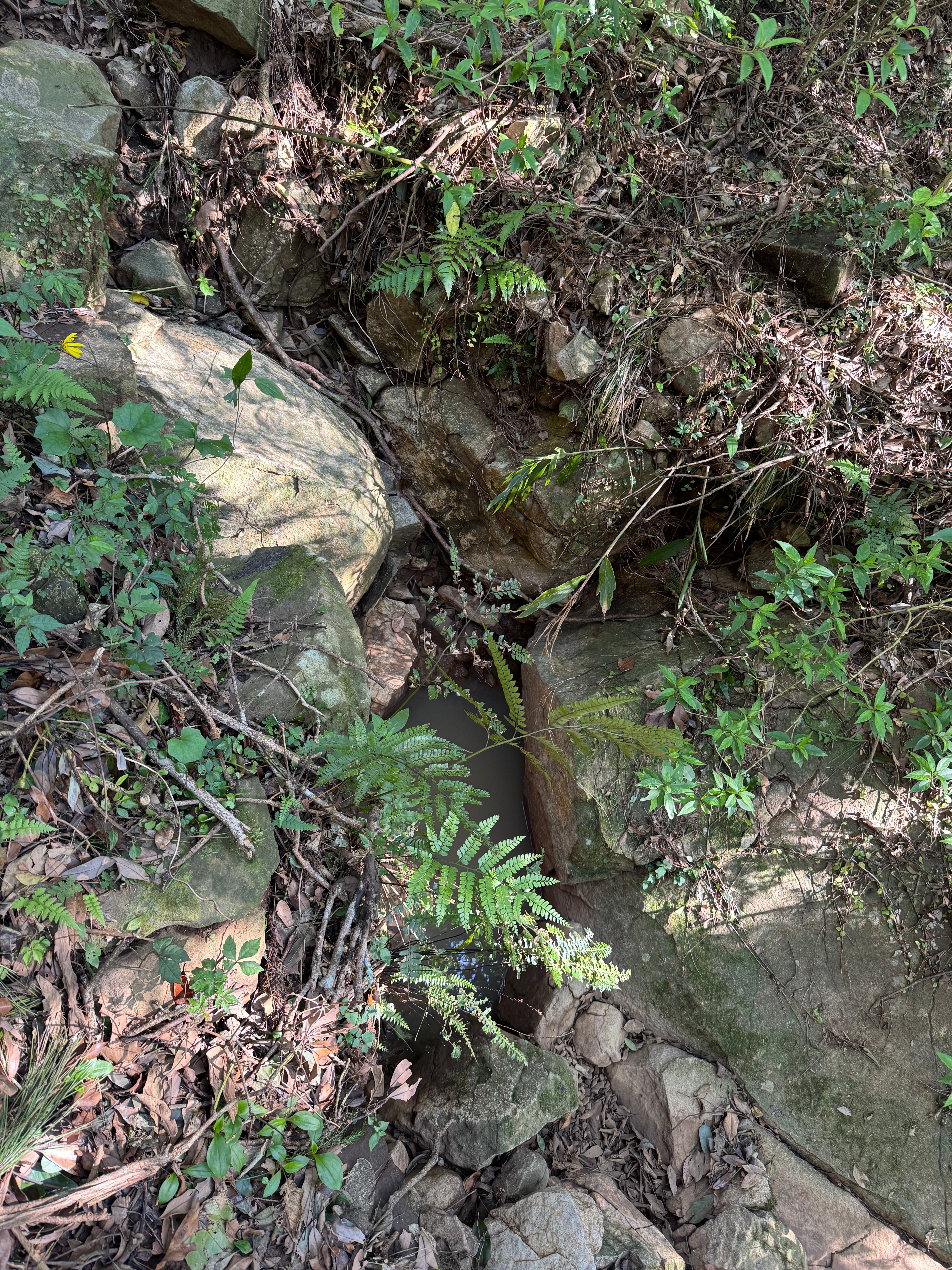 Eventually (at 1.4 km along), the stone steps ended again, leaving us on a nice dirt path. Good on the knees! Still, despite the relative flatness of the path, it kept going upwards.