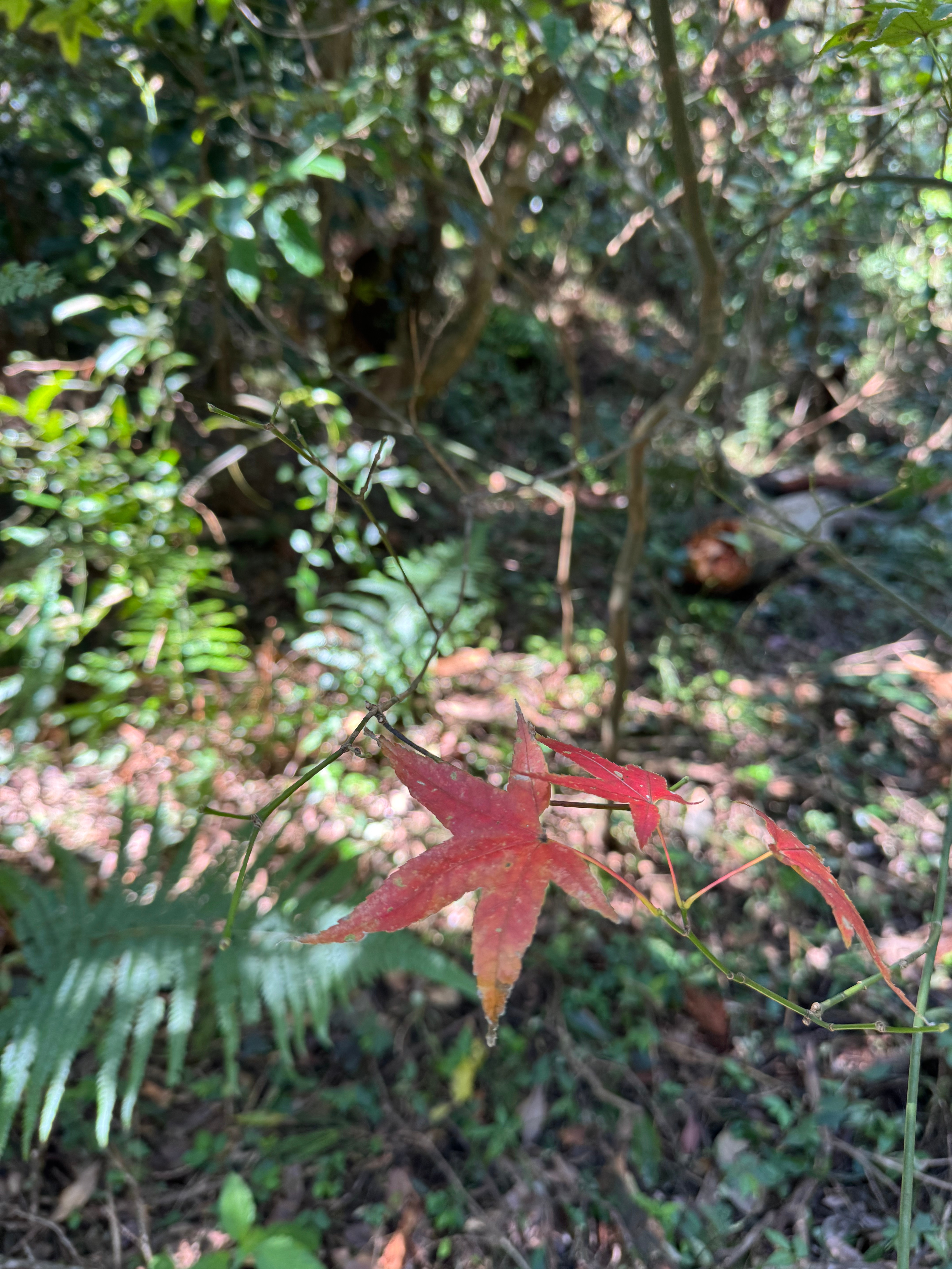 We also saw squiggly lines on leaves, a cute and rather ancient looking bridge, ferns, and bright red maple leaves (all but the last were objects that my six-year-old begged me to take photos of).